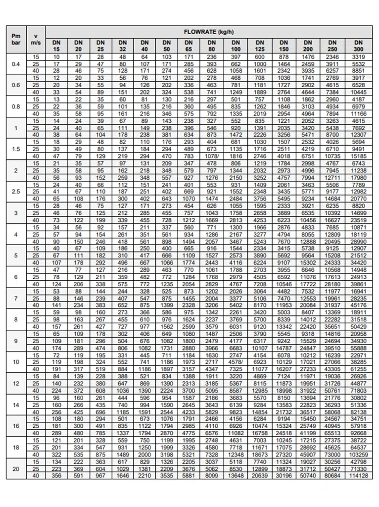 טבלת ספיקות קיטור
